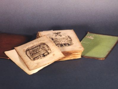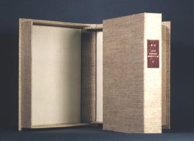 For fragile or rare books, in many cases the best solution is a conservation box (clamshell) to house them. Lehmann Bindery has made these for such diverse items as the first edition of Kepler's work, to the hand-written notes of Richard Nixon while a law student at Duke University. Boxes can be cloth bound (pictured) or covered in ornate leather with real gold leaf decorations, looking like a finely bound volume on the shelf. Our conservation boxes are tailor-made for each item.